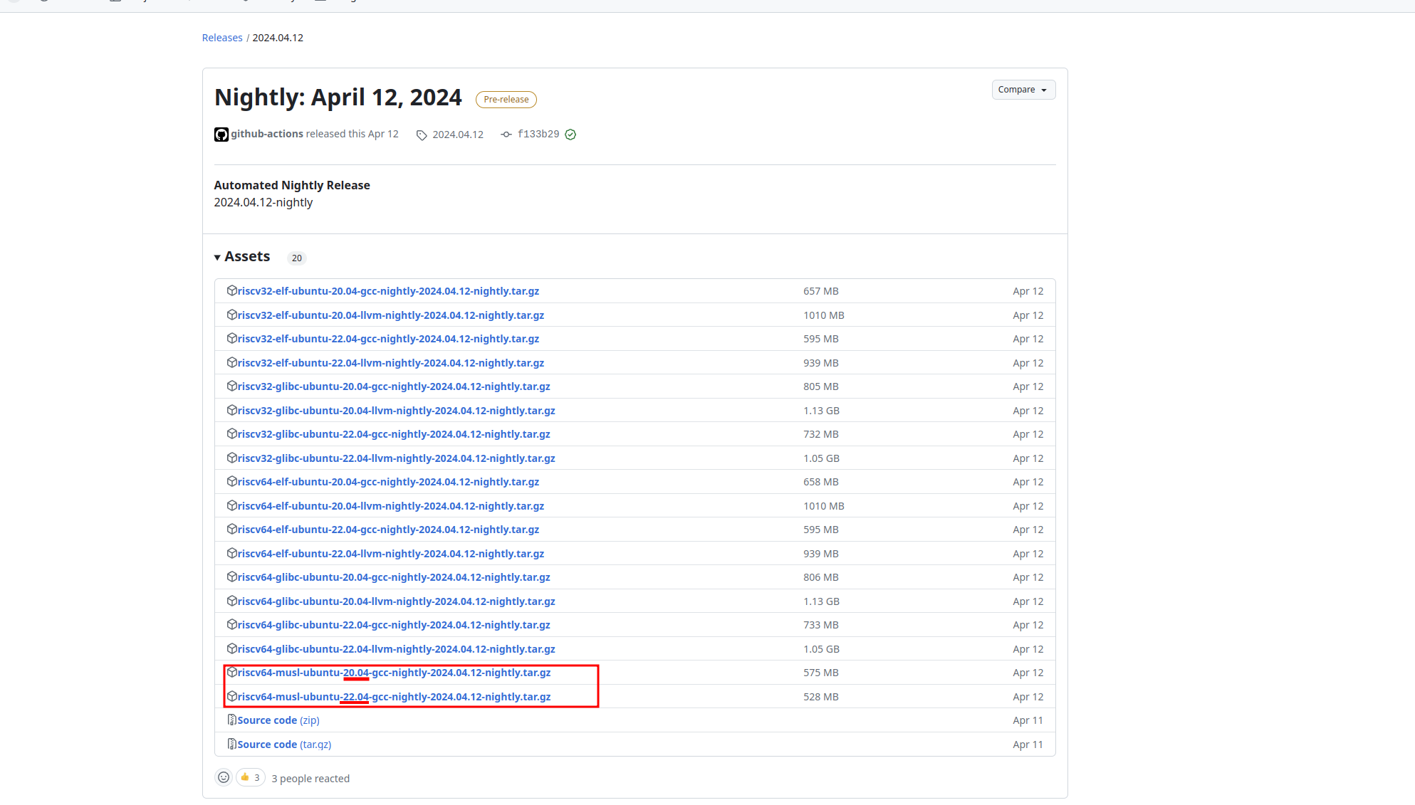 打开[github](https://github.com/riscv-collab/riscv-gnu-toolchain/releases/tag/2024.04.12)下载压缩包：